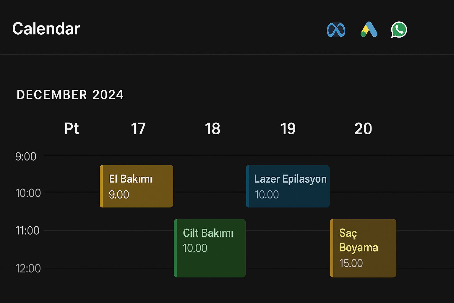 WhatsApp üzerinden otomatik randevu akışıyla müşterilerinizi bilgilendiriyor, boş koltuk bırakmıyoruz.